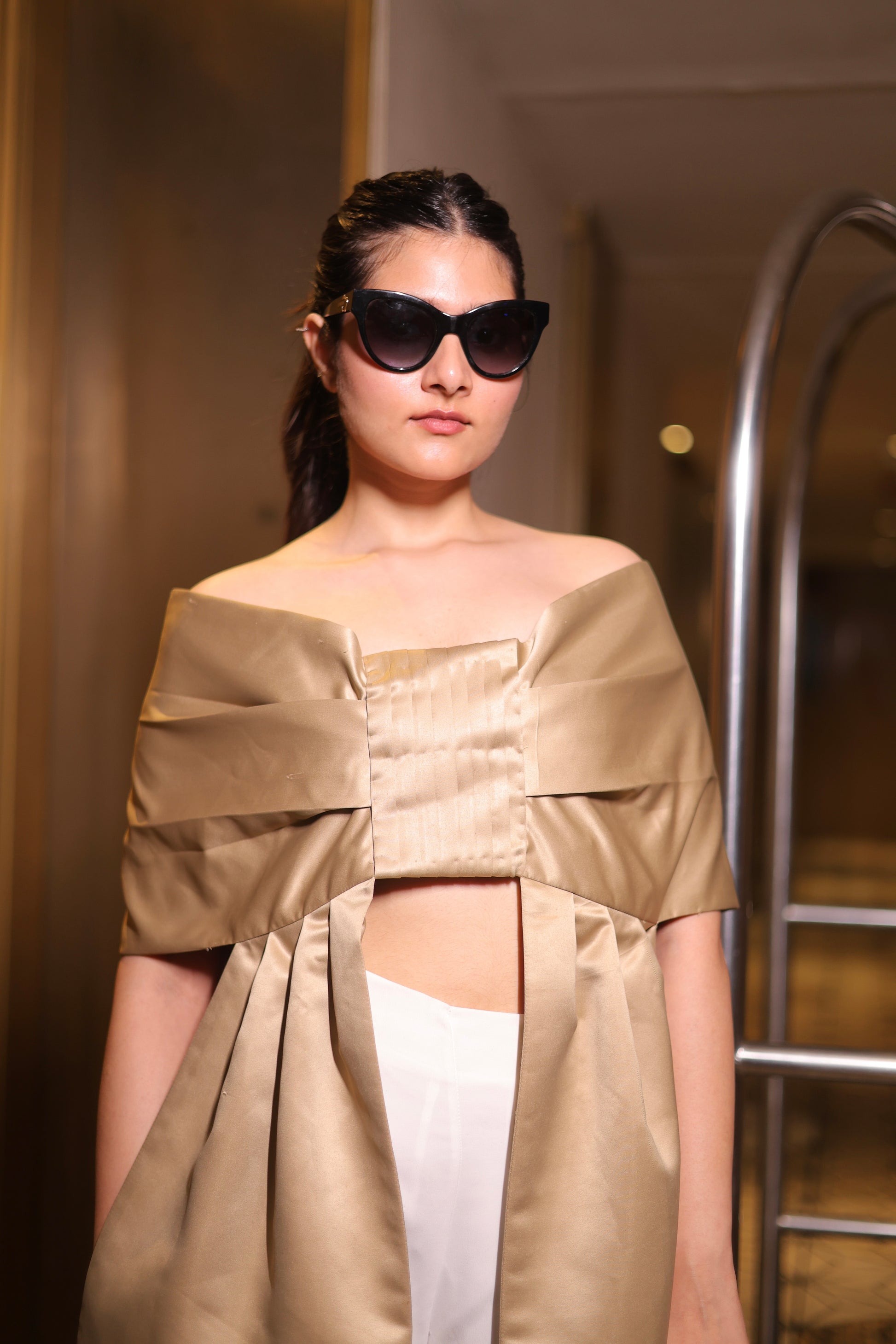 Turn every entrance into a moment with Capella, a luxury co-ord set in ultra-premium satin. This 2-piece statement features a structured bustier, a dramatic bow-cape top . Soft, lustrous, and impeccably tailored, Capella is perfect for cocktail parties, red-carpet events, and engagement dinners. Designed for the modern, confident woman, itβs a rare, fashion-first ensemble you wonβt find anywhere else. Step in, stand tall, and let Capella make the statement.